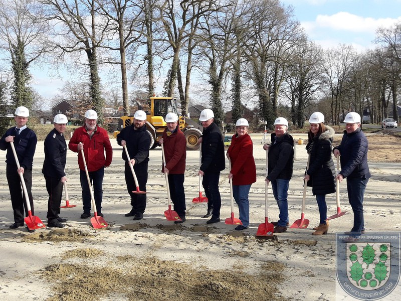 Heute war der erste Spatenstich, ausgeführt von Politik, Verwaltung, Planern und der Feuerwehr.