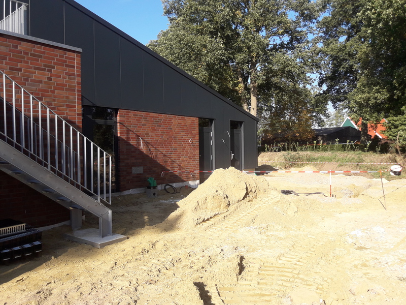 Die auffälligsten Fortschritte ergaben sich im Laufe des Oktober Monat auf dem Platz vor und hinter der Fahrzeughalle. Hier machten die Plasterarbeiten deutlich sichtbare Fortschritte, sodass sich