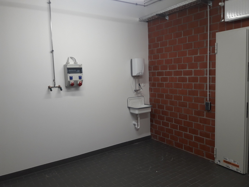 Im Innenbereich ist die Arbeit der Fliesenleger in der Fahrzeughalle erledig. Hier sind nur noch Restarbeiten zu erledigen, während die Maler, Elektriker und Trockenbauer noch einige Tage Arbeit vor