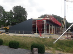 Die Mitarbeiter der Stahlbaufirma haben mit dem Bau der Fahrzeughalle begonnen. Innerhalb kurzer Zeit stellten sie das Grundgerüst der Fahrzeughalle fertig.